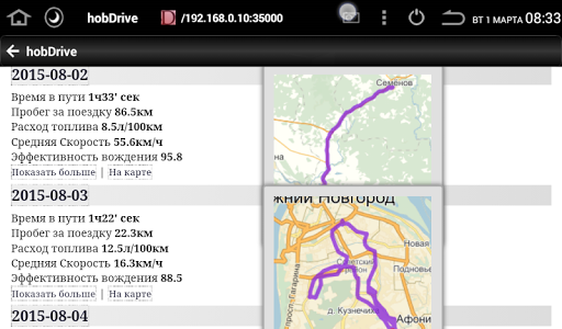 ХобДрайв использует OBD2 / ELM327 адаптер и данные GPS, чтобы непрерывно собирать, накапливать и показывать статистику во время движения.