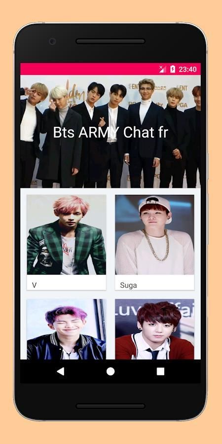 Here are some news for you to learn more about one of the best android apps. 20,000+ users downloaded BTS ARMY français Chat latest version on 9Apps for free every week! Fortunately, It's easy to get this popular app. This hot app was released on 2018-03-21. For more mobile apps information, you can go to our official website - 9Apps.
