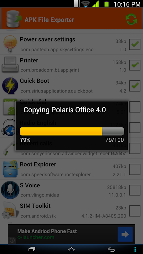 - Export a setup file application(.apk) from your phone to SD card.