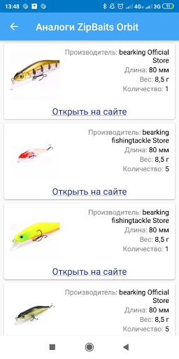 В настоящее время приложение имеет 4 основные категории товаров - воблеры, мягкие приманки, катушки и спиннинговые удилища. В дальнейшем планируется добавить в список категорий лески и многое другое.
