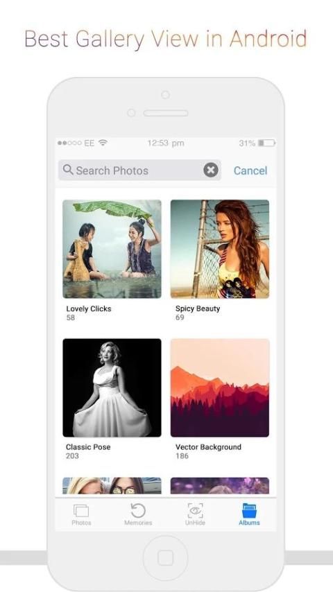 • Для классической фотогалереи чувствует, вид Галереи имеет все ваши фотографии и видео в одном гладком виде галереи.