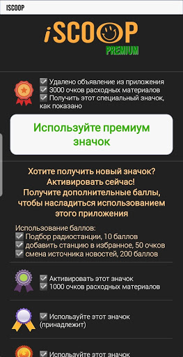 🔘 In-App Billing - Магазин для пользователя, чтобы перейти с БЕСПЛАТНОЙ версии на ПРЕМИУМ и приобрести дополнительные очки и значок (Премиум удалит рекламу из приложения и будет вознагражден новыми значком и очками)