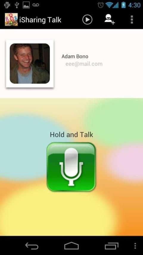 Turn your phone into a Walkie-Talkie. Don't waste time on phone calls and text messages. No more waiting for the phone to ring. Instantly talk to your friend at once with the touch of a button. Your friends can listen to your message while you talk or check it out later. Fast, Easy, Simple and Free. No setup needed if you have a Facebook account. Connect with Facebook friends via iSharing. * Real-time Walkie-Talkie * Unlimited and FREE * Works over WiFi, 3G * Connect with Facebook friends * Support Android & iOS Feel free to contact us. Email: admin@isharingsoft.com Twitter: http://twitter.com/isharingsoft Facebook: http://www.facebook.com/iSharingTalk