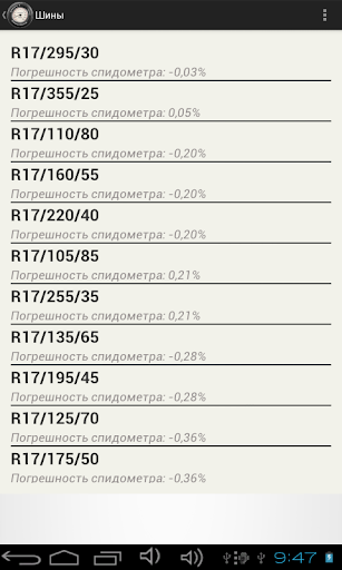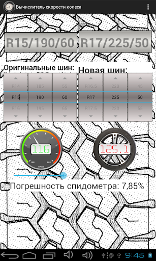 Эта программа дает возможность выбора 100 размеров шин, которая cпоcобcтвует наименьшей погрешности спидометра.