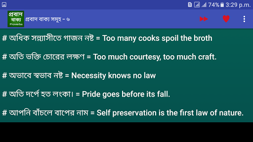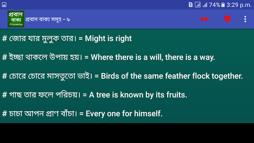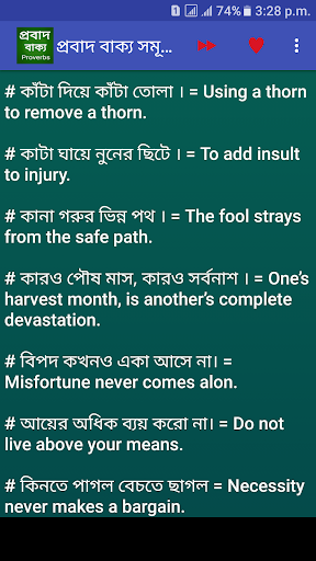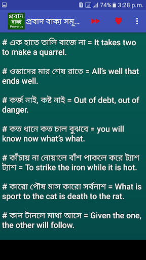 আমরা বিভিন্ন প্রতিযোগিতামূলক পরীক্ষায় অবশ্যই translation দেখতে পাই। কিন্তু এর বেশির ভাগই থাকে প্রবাদ বাক্য। যে কোন সাধারণ translate এর মত করা যায় না। এ গুলোর বেশির ভাগ মুখস্তই করতে হয়।আমরা অনেকেই কথার পৃষ্ঠে বিভিন্ন প্রবাদ, প্রবচন বলে থাকি।কিন্তু আমরা কি জানি সেই সব প্রবাদ প্রবচনের ইংরেজি কি?এ অ্যাপটির মাধ্যমে বিশ্ববিদ্যালয় ভর্তি পরিক্ষা, চাকরির ইন্টারভিউ,ব্যাংক জব,এমন কি বিসিএস প্রশ্নের