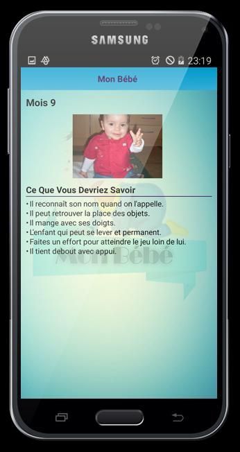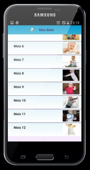 Cette application vos permet de Suivre tous les aspects de votre croissance et le développement de Mon bébé Mois Par Mois