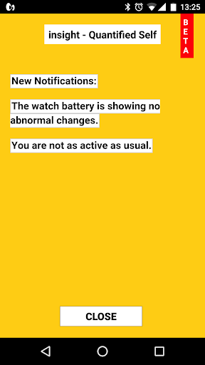 Пожалуйста, подумайте, что (1) его предсказание находится в фазе тестирования, и это может обеспечить неправильные уведомления. Если он беспокоит, вы можете отключить его. (2) Мы получаем данные о деятельности от Google Fit, и у них могут быть ошибки в них и исходя из телефона. Также у вас должен быть подключен телефон, чтобы получить данные о деятельности. (3) При уважении вашей конфиденциальности Insight отправляет данные на наш сервер для научных исследований.