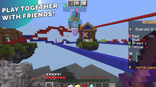Вы когда-нибудь играли на картах кровати для Minecraft? Если нет, то запустите, чтобы загрузить кровать войн для Minecraft. Если кто-то не знает, какие кровать в Minecraft, потом слушайте. Загоны в Minecraft - это карта PVP, где вы будете бороться в небе, а точнее на островах, которые зависят в небе. Mod Mod Wars часто называют битвой за кровать, потому что ваша задача - уничтожить кровать вражеской команды, тем самым их команда больше не сможет оживить. Как только вы пошли на обед для Minecraft Vars, вы выбираете цвет команды, тогда вы брошены на острова, и вот и все, начались битвы. Торговец будет сидеть на одном из островов кредитов для Minecraft, вы можете купить самые крутые брони и оружие от него. Эти карты Minecraft очень красивы, вы можете сражаться и наблюдать за закатом одновременно. Исследуйте острова в Minecraft, и поэтому вы будете сильнее. Пригласите своих друзей поиграть в Minecraft Bedwars и команда. Используйте моды для Minecraft, для более легкой победы. Иметь хорошую игру!