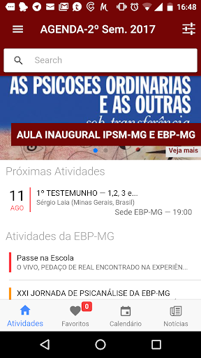 Eis aqui um dispositivo de trabalho, vivo, modesto e precioso, desenhado para conectar, fazer laços, orientar e estreitar as distâncias quando o que está em jogo é alçar a transmissão do ensino de Lacan. Um só toque e você abre na palma da mão as notícias dos seminários, debates, conferências, acessa vídeos e transmissão direta de eventos, além dos textos de referências e agenda de atividades da Seção Minas.