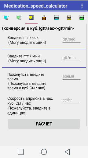 Mdication speed calculator - Приложение сделано, чтобы сделать расчет скорости сока более удобным.
