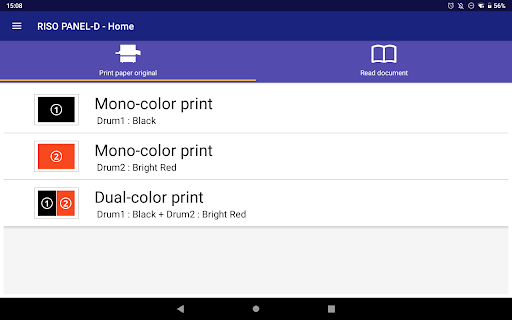 Riso Panel-D-это приложение для планшетных устройств, которое позволяет вам управлять цифровыми дубликаторами Riso. Это позволяет легко печатать, следуя инструкциям на экране. Вы также можете резервное копирование и восстановить настройки вашего дубликатора.