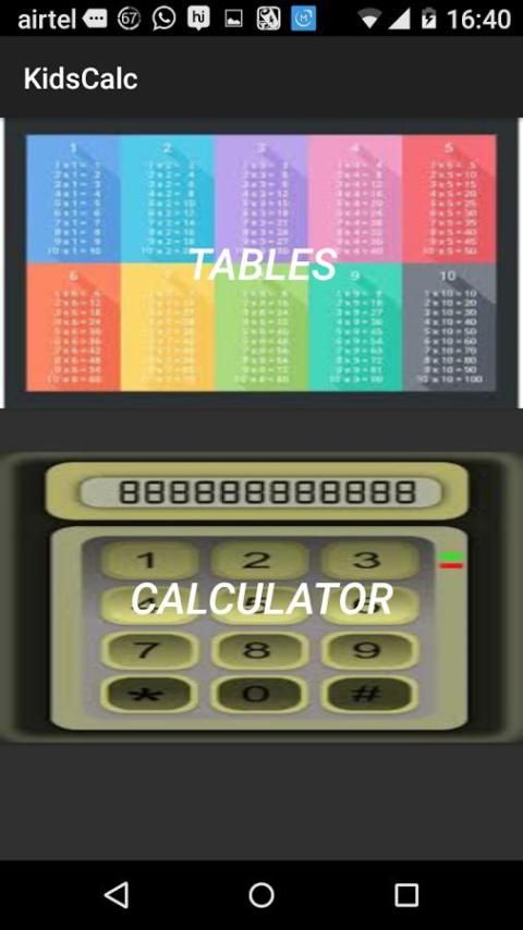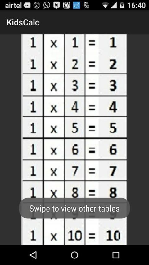 Сначала он отображает таблицы 1-20 для детей, чтобы практиковать и овладеть ими. Она также имеет калькулятор для основных математических функций, которые будут использоваться детьми.