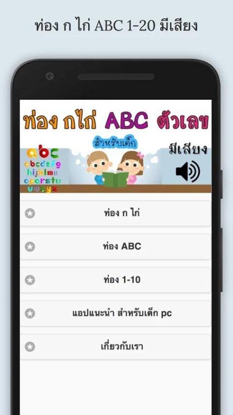 Добро пожаловать в официальный магазин приложений. 20,000+ пользователи скачали последнюю версию ท่อง ก ไก่ ABC 1-10 มีเสียง в 9Apps бесплатно каждую неделю! Если вы не любите старые версии, можно обновить его прямо сейчас. Это горячее приложение было выпущено в 2016-09-17. Вам можно увидеть большие приложения, которые недавно выпусканы в 9Apps.