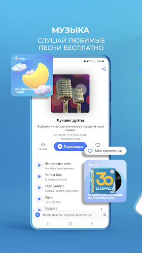 - бесплатный доступ к популярной мировой и казахстанской музыке без рекламы и ограничений