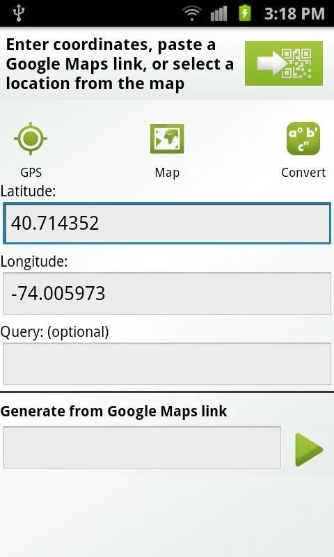 QR-GPS представляет собой плагин для популярного приложения QR Droid. Он добавляет возможность создавать QR-код с вашего текущего местоположения, используя ваш GPS или провайдерами сети. Затем, вы можете поделиться этом месте легко.