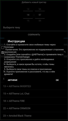 Если у вас есть две или даже больше тем в Телеграме, Вы, вероятно, встретились с тем, что определенные темы нельзя было поставить использовать в определенные часы, с этим приложением это стало возможно!
