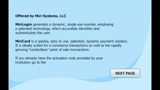 MIRILOGIN - это простое в использовании, безопасной и безопасной системе идентификации личности, которая использует передовые запатентованные «динамические» технологии номера; Он положительно идентифицирует и проверяет подлинность пользователя, обеспечивающий несравненный уровень защиты и безопасности идентичности. Мирилогин можно использовать с любой системой, которая требует положительной аутентификации, такой как правительство, здравоохранение, образовательные, финансовые или другие учреждения.