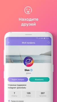 Slon — социальная сеть вопросов и ответов. Здесь можно задавать вопросы своим друзьям или незнакомым, получать интересные вопросы, отвечать на них, обмениваться сообщениями и др.
