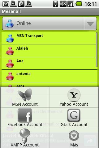 All the messenger in one. Mesanall allows to use your MSN, Gtalk, Yahoo, Facebook and Jabber.org from A unique interface.When your account has been provisioned, go to quot;menuquot; to configure different messenger accounts. From the quot;menuquot;, you will also be able to:1 Change your status message.2 Manage your conversations.3 Set your preferences.Important: Remember that your Facebook chat username is not your Facebook login account. Go to Facebook account settingsfor further details about your Facebook chat username.This is an initiative from Instaneo Unified Communications so you can also use other converged Instaneo Services.