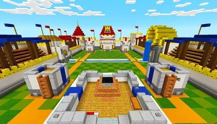 Добро пожаловать на одну из лучших карт Minecraft PvP. Эта карта вдохновлена модной игрой Clash Royal. Карта разделена на две зоны для двух команд, сформированных настоящими игроками: красной командой и синей командой.