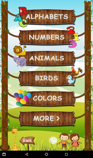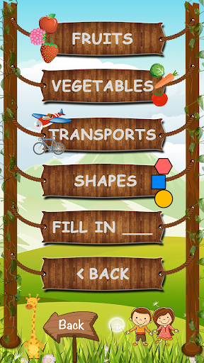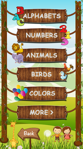 The attractive menu take you in the world of letters, numbers, animals, birds, colors, fruits, vegetables, transports and shapes.