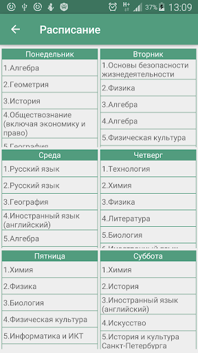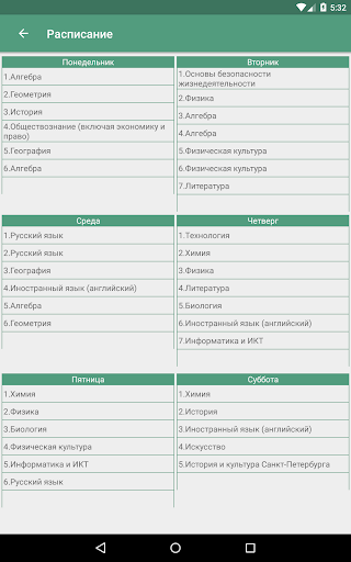 - расписание;