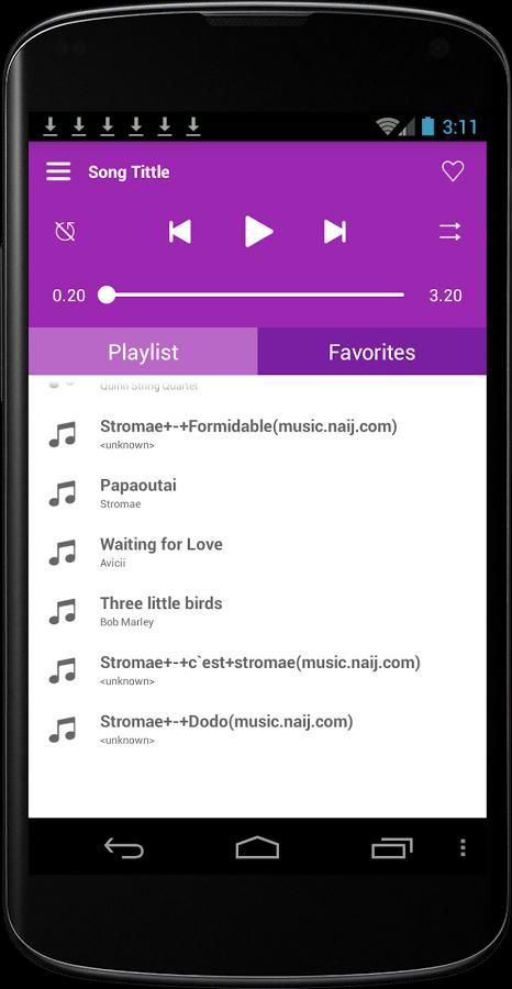 музыкальный проигрыватель mp3 дизайнер в основном андроид приложение, с mp3-плееров поможет вам играть в любую формат mp3, песни, аудио или дорожки в устройстве и автоматического воспроизведения музыки в вашем списке по одному, mp3-плеер может обнаружить автоматической музыку и показывать их в список можно управлять их и добавить музыку в список любимых,