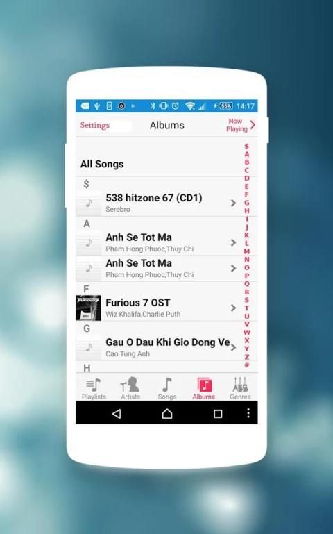 Музыка - Музыкальный плеер OS 9 имеет много особенностей. Песни, чтобы показать все песни вашего телефона. Вы можете проведите пальцем вверх вниз, чтобы выбрать песню. Вы можете использовать поиск или выбрать первую букву вашей песни, чтобы найти свою песню. Альбомы, чтобы показать все альбом в телефоне. В каждом альбоме, вы можете прослушать все песни только лишь в том, что альбомы. Исполнитель так же, как альбом, позволит вам слушать все песни этого исполнителя, которые исполняют песню. Жанр, чтобы разделить вашу песню в каждом жанре и помочь вам слушать каждого жанра, как хип-хоп, EDM, поп, рок.