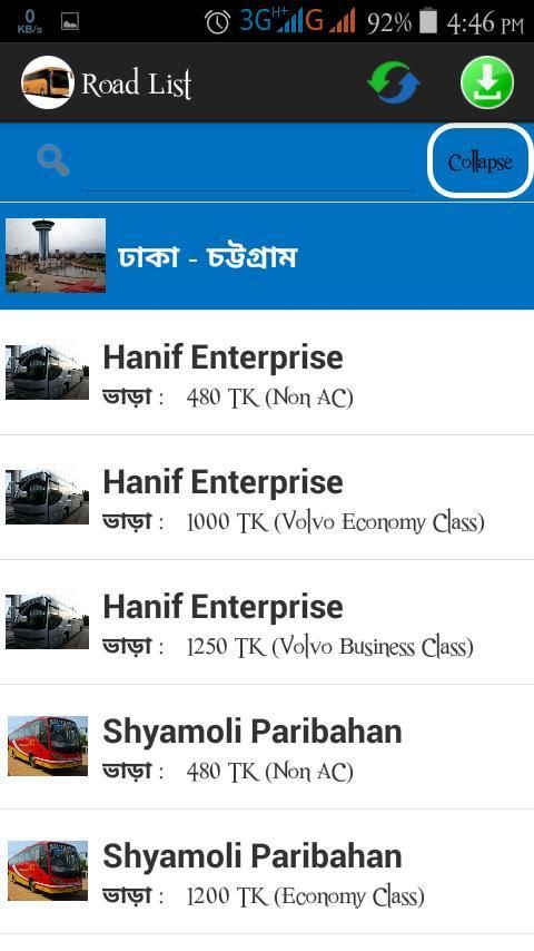 ঢাকা থেকে বিভিন্ন জেলায় অনেকগুলো বাস যাত্রী পরিবহন করে থাকে. যারা বিভিন্ন জেলায় বসবাস করেন বা ভ্রমণ করতে যান, তাদের জন্য এসি এবং নন-এসি বাসগুলোর নাম ও ভাড়া সংক্রান্ত তথ্যগুলো থাকছে এ এ্যাপে.