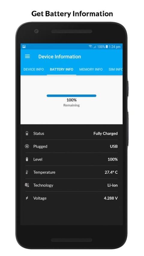 В этом разделе вы получите всю текущую информацию этапа батареи вашего устройства. Вы получите уровень заряда аккумулятора, состояние батареи (зарядка или разрядка), температуру батареи, технологии батареи, напряжение батареи и т.д.