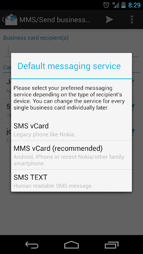 Вернуться в дни Nokia SMS VCARD Стандарт был наиболее широко используемым форматом обмена визитной карточкой. И это диспетчер Bizcard, который приносит его на ваше устройство Android сегодня. Вы можете отправить и получать Nokia SMS VCards.
