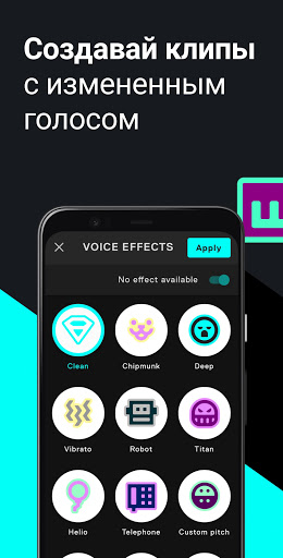 Voicemod Clips - идеальное приложение для создателей контента, которые публикуют его в социальных сетях. Контентом Voicemod Clips можно делиться в Twitter, Facebook, Snapchat, Instagram (включая Stories и Reels) и TikTok. Удивите своих подписчиков на любой платформе!