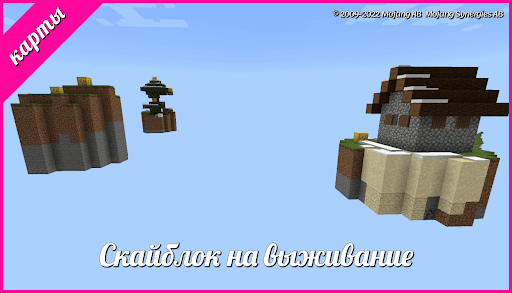 Первое, что ты найдешь в этом приложении это скайблок в майнкрафте выживание. Ведь мод на скайблок один блок это самый популярный игровой режим. Который включает моды на выживание на одном блоке. Ты окажешься на остров один блок, который парит в воздухе. Он и есть скайблок для майнкрафта. Именно тут тебе придется выживать. Скайблок карты для майнкрафта это очень небольшой островок, состоящий из блоков земли. Тут ты не найдешь никаких лишних ресурсов. Но все же, ты сможешь продержаться на скайблок для mcpe довольно долгое время. На скайблок карта для minecraft ты найдешь дерево и сундук с некоторыми предметами. Ты сможешь построить различные генераторы на карты скайблок, добыть большое количество ресурсов и побывать на соседних островах. Просто выполняй всевозможные задания на моды на скайблок, чтобы продержаться как можно дольше.