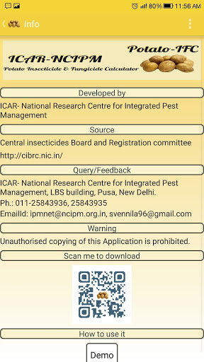 Android Smart Phones в качестве инструмента коммуникации популярны, а люди разных областей, включая дилеров пестицидов, функционеры расширений и фермеров, обладают и используют их в своей повседневной жизни. Доступность доступов Приложение для необходимости использования в защите растений является добавление потенциального значения в цифровой эпоху. Учитывая текущее состояние и рекомендательные пути использования пестицидов в Индии и потенциального охвата цифровых технологий Android-приложений на расчетах инсектицида и фунгицида, названные «инсектицидными и фунгицидами калькулятора» (IFC).. Инсектициды и фунгициды, рекомендованные для насекомых и заболеваний Наряду с их дозировками объем распылительной жидкости для использования и периода ожидания помимо дополнительной информации был составлен из CIB & RC. Учитывая детали представляет проблеск своих чисел для понимания необходимости IFC для разумных вредителей в области культур.