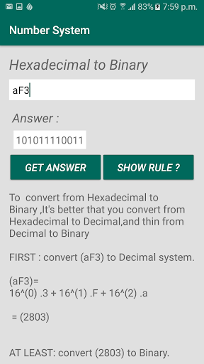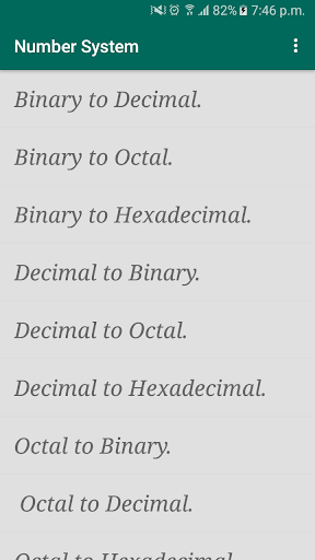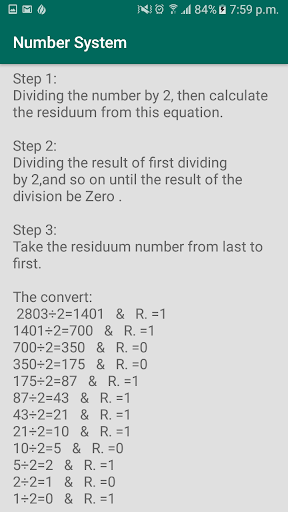 students how study computer science , this app help you to convert between number systems like Binary , Octal , Decimal and Hexadecimal ,And teach you how you can do this conversion by mathematical.