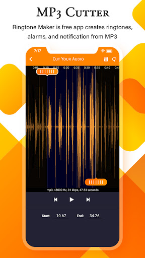 С помощью этого приложения MP3 RUTTER & Ringtone Maker вы можете легко обрезать музыку с вашего устройства. Вы можете использовать результат нареза в виде рингтона, сигнализации, тона уведомления или музыку. Вырежьте лучшую часть вашей аудиографии и сохраните ее как ваша мельчитка / сигнализация / музыкальный файл / уведомление. Вы можете легко управлять вырезанными результатами легко, и вы можете поделиться с ними с друзьями. MP3 Cutter также может слиться или смешивать ваши аудиофайлы в один файл.