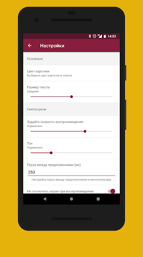 ❗️ ВАЖНОЕ ЗАМЕЧАНИЕ: Для работы приложения необходимо, чтобы на вашем устройстве был установлен движок-синтезатор речи (Text-To-Speech) и голоса к нему. Если этих компонентов у вас пока нет, установите Google TTS, Acapela, Ivona или SVOX TTS из