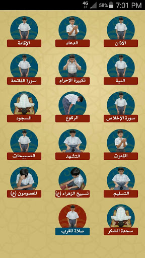 يحتوي برنامج تعليم الصلاة - كيف نصلي على جميع أقسام الصلاة بشكل مفصل، حيث يحتوي كل قسم على: