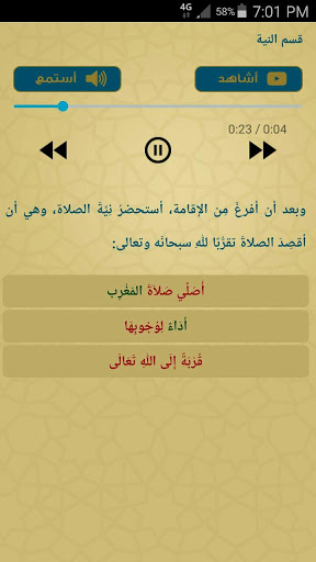 كما يحتوي على قسم خاص بصلاة المغرب كاملة بالفيديو التعليمي.