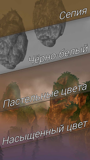 • Различные цветовые режимы - яркие или пастельные цвета, черно-белый режим, акцентирование цвета или сепия
