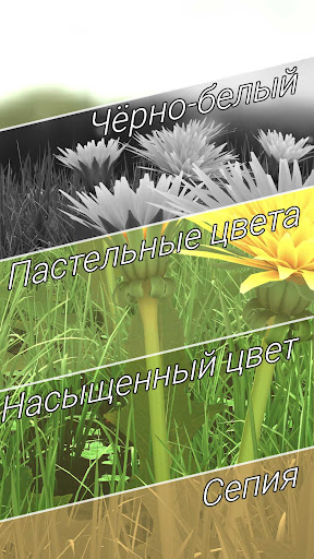 • Различные цветовые режимы - яркие или пастельные цвета, черно-белый режим, акцентирование цвета или сепия
