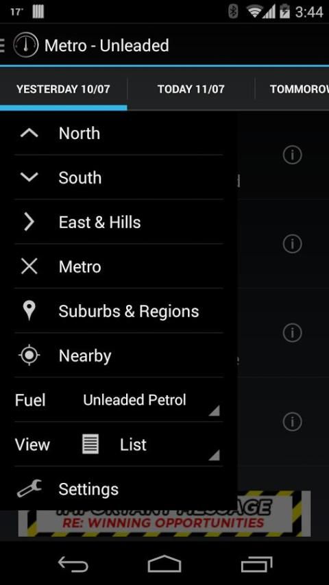 Примечание приложение использует данные из министерства торговли Западной Австралии и службы FuelWatch.