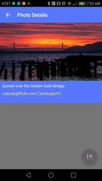 The app searches the contents of the Flickr database for the tags you specify and lists them for you to choose. You can click on each item displayed to have an expanded view of the images. Option to download the image to your local is available.