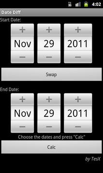 Calculate days between two dates with ease. First app released! :) Please contribute, reporting bugs and suggestions!