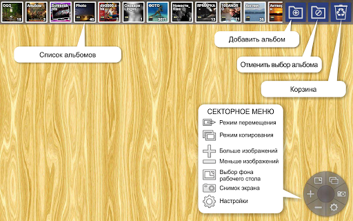на верхней панели позволяет связать его с выбранным столом и показать фотографии альбома. Количество видимых снимков можно менять секторами меню " " и "—".