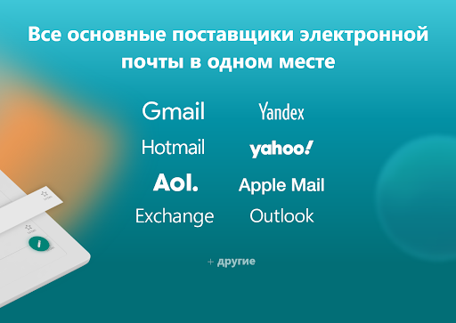 ● Простая настройка для: Gmail, Яндекс, Yahoo, Hotmail, FastMail, Apple, Рамблер, Mail.ru и других;
