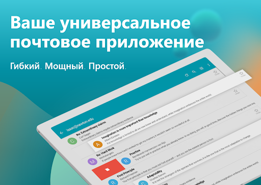 Aqua Mail – это бесплатная почтовая программа для личной и корпоративной почты. Достаточно гибкая чтобы Вы могли работать с почтой именно так как привыкли, эта программа станет отличной заменой Вашей текущей почтовой программе.