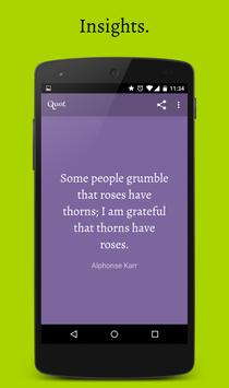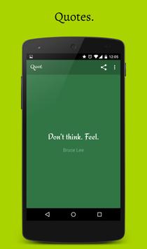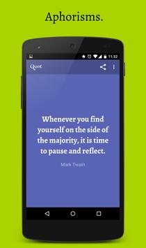 Quot presents you quotes, sayings, aphorisms, quotations, proverbs, words of wise and wisdom. It is simple and beautiful. It is designed to motivate, amuse, inspire, and provoke profoundness in you. It is not just another quote app.