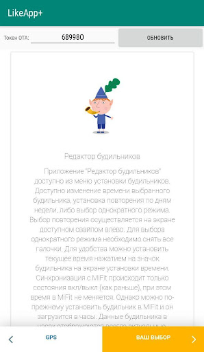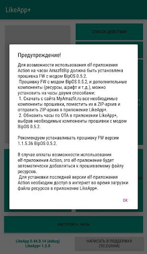 3) установить в часы elf-приложение "Action" (это приложение устанавливается автоматически во время прошивки на часы файла ресурсов с помощью приложения LikeApp ).