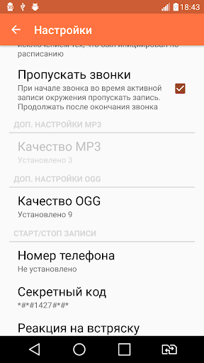 5. Встряхивания телефона. Параметры встряхивания настраиваются. По умолчанию - отключено.